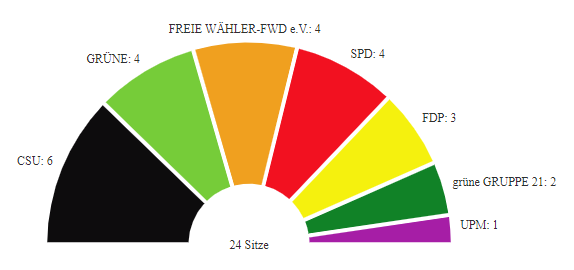 En Bavière l’élection du maire est un vote séparé. C’est pourquoi il peut y avoir un maire d’une étiquette politique et une majorité d’un autre parti politique opposé.